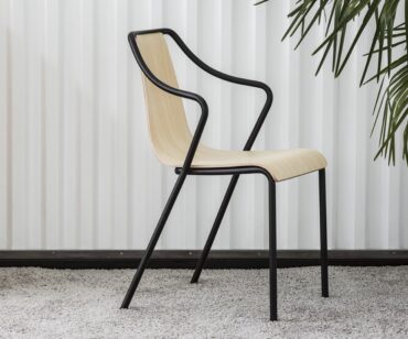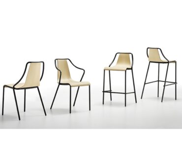 Sillón Ola con reposabrazos, con marco en acero pintado blanco o negro. Carcasa disponible en chapa o acolchada, tapizada en piel, piel sintética, tela o piel regenerada.