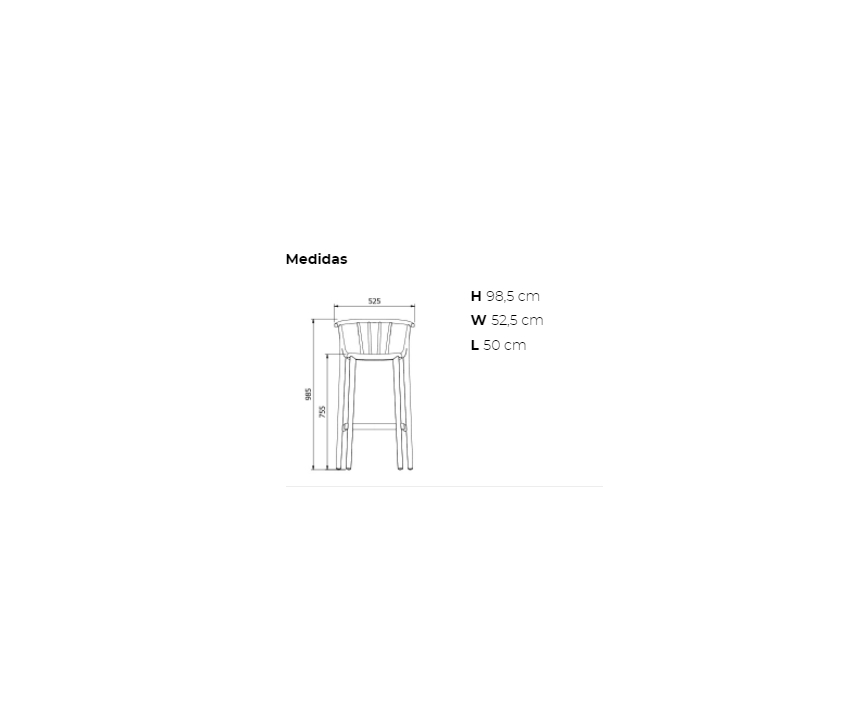 Taburete Woody, para uso interior y exterior. Fabricado en polipropileno con fibra de vidrio. Protección UV. Con espuma de secado rápido. Tapizados aptos para interiores y exteriores. Gramaje 275 gr/m2.