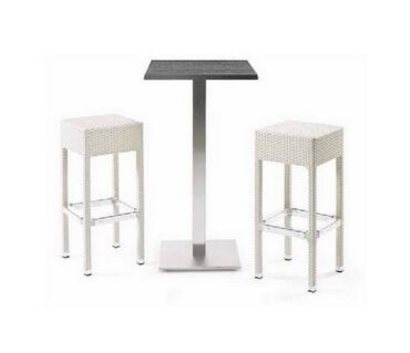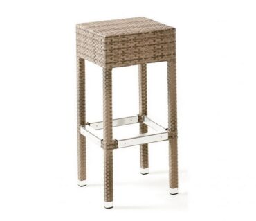 Taburete 25-4553. Taburete con médula sintética trenzada a mano y estructura en aluminio. Disponible en médula blanca o moka. Válido tanto para interior como para exterior.