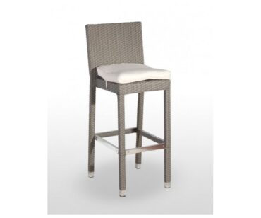 Taburete hostelería Brento. Taburete realizado en médula-rattán sintética disponible en negro, marrón o gris, con respaldo para un mayor confort. Cojín incluido. Ideal para hacer disfrutar a tus clientes de la estancia en tu local. Perfecto para terrazas y espacios abiertos.