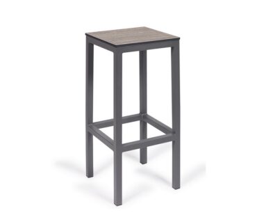Taburete hostelería 25-4561, de reducidas dimensiones y diseño robusto. Asiento en compacto a elegir y estructura de aluminio pintado en gris, blanco, negro o grafito.