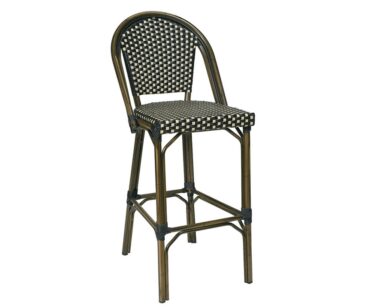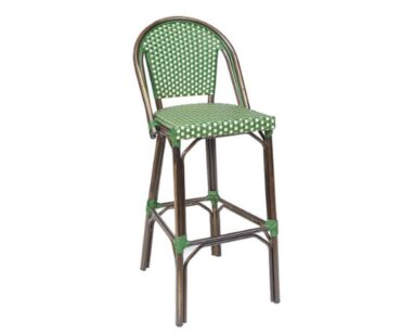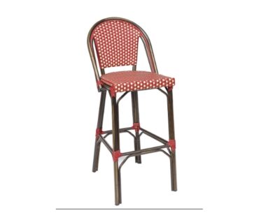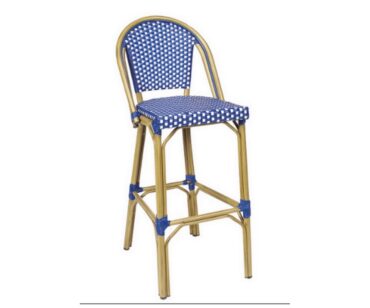 Taburete 25-8229 para hostelería y de gran diseño y confort. Estructura en aluminio en acabado bambú y deco nogal disponible en diferentes colores. Apto para exterior e interior, taburete apilable. Su carcasa puede ser en médula o textilene.