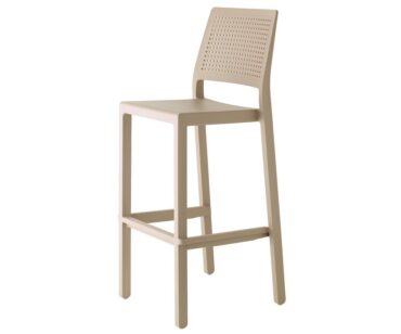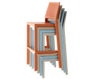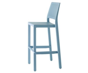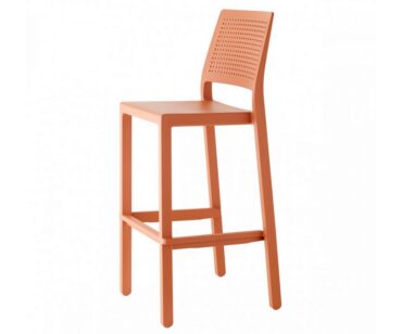 Silla para hostelería 58 Emi, un aspecto tradicional estampado con pequeños agujeros, con una amplia gama de colores, la versión de taburete se puede completar con la familia Emi, formada de sillas y sillón. Fácilmente apilable, es una solución versátil para entornos al aire libre, como bares de playa y mesas altas al aire libre. Disponible en 2 alturas 65cm y 75 cm, para que puedas adaptarlo a cualquier barra o encimera.
