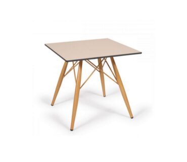 Mesa baja de hostelería Picasso X-4. Original mesa de interior realizada con estructura de acero disponible en dos acabados: pintado deco madera natural o madera wengué. Tapa de melamina, disponible en varias medidas, acabados y formas, tanto redonda como cuadrada.