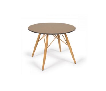 Precio indicado para mesa con pata de acero deco madera natural, tapa Ø60 en Werzalit acabado «Solo» y válido para pedidos iguales o superiores a 10 unidades.