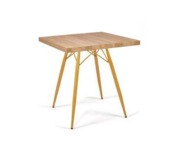 Mesa de hostelería 25-360 X-4. Original mesa de interior realizada con estructura de acero disponible en dos acabados: pintado negro o deco madera natural. Tapa de melamina, solo, compact, melamina gama studio, melamina regruesado, disponible en varias medidas y formas, tanto redonda como cuadrada.