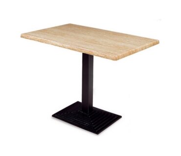 Mesa hostelería 25-4640 realizada en fundición de hierro con base de 55x40cm escalonada y columna en acero negro. Tableros de 100×60, 110×70, 120×80, disponibles en Werzalit, Melamina, Compact o melamina gama studio.