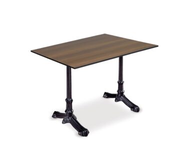 Mesa modelo 25-6010, con pie de fundición de hierro color negro mesa de medida rectangular, con diferentes acabados de tapa, compact, melamina regruesada, metal melamina o melamina gama studio