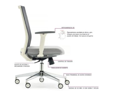Novedoso respaldo ergonómico con malla técnica 3D y soporte lumbar regulable en altura. Reposabrazos ajustable en altura y giro. Ofrecen una mayor movilidad en el puesto de trabajo. Con apoyos de goma.