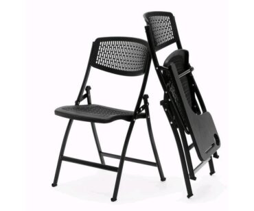 – Estructura: Plegable Y Apilable verticalmente. Fabricada en acero oval de 30 x 15 mm pintado epoxi color negro