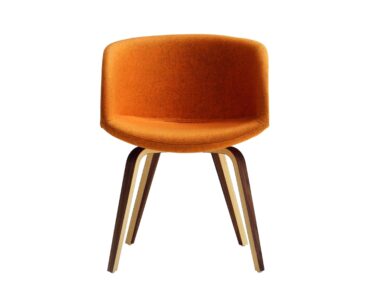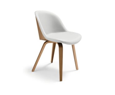 Silla Danny, un modelo de formas redondeadas, comodidad y diseño suave. Base de madera prensada recordando el estilo nórdico. Carcasa tapizada en piel,tela.