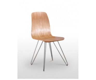 Silla hostelería Trallin. Silla con original estructura metálica cromada y carcasa de haya barnizado natural. Haz que tu local sea un lugar único y acogedor además de actual y moderno y no dejes que tus clientes queden indiferentes.