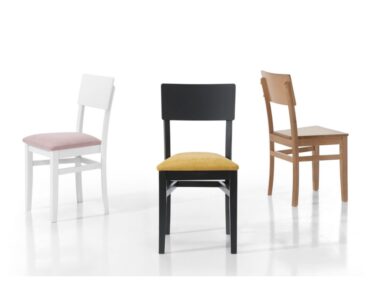 Silla con chasis fabricado en madera de haya maciza y reforzado con 4 escuadras de haya con triple diente y tornillo de acero más 2 traviesas laterales. Modelo apilable lo que la convierte en una opción muy buena para pequeños espacios.