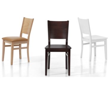 Silla hostelería muy resistente fabricada en madera de haya maciza, disponible en varios acabados de madera, tanto tintes como lacas. El asiento se puede fabricar en madera o tapizado en eco-piel de fácil limpieza con varios colores a elegir.