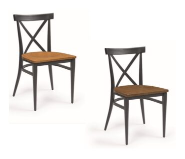 Silla 25-154 con estructura realizada en acero acabado en blanco, celeste y grafito o negro. Gran comodidad y durabilidad. Asiento en madera maciza.