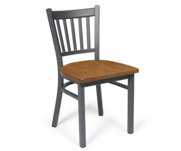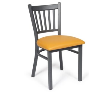 Silla modelo 25-158, una silla clásica fabricada en acero pintado grafito y muy resistente. Perfecta para hostelería y de uso interior. Esta silla permite la combinación de asiento en madera laminado, tapizado o madera macizo. Su diseño industrial le da gran versatilidad.