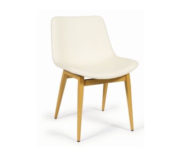 Silla hostelería 25-6626 carcasa madera laminada tapizada en blanco, Kashmir, albero o marrón. Patas de acero disponible en efecto madera color natural.