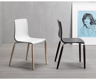Silla hostelería Alice Wood, diseño de Arter&Citton. Magnífica colección realizada en madera de haya maciza natural o wengué, 4 patas en tubo de acero cromado o pintado con polvo de poliéster. Existen varias versiones de esta pieza: con 2 tipos de brazos (abiertos o cerrados), opción de añadirle pala para escritura, base en trineo, patas en madera maciza, con carcasa en tecnopolímero… Apilable. Como verás, dispone de infinidad de opciones, elige la que mejor le vaya a la personalidad de tus espacios públicos y haz de tu negocio un lugar único que no deje indiferente a nadie.