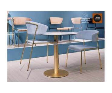 Silla para hostelería 58 Lisa, inspiradas en los elegantes interiores de los años 50 y 60. La delgada estructura tubular envuelve y apoya el respaldo de los sillones y las sillas, con un asiento acolchado o de madera. Lisa se adapta sin esfuerzo a cualquier contrato o entorno doméstico gracias al uso de acabados y materiales sofisticados.