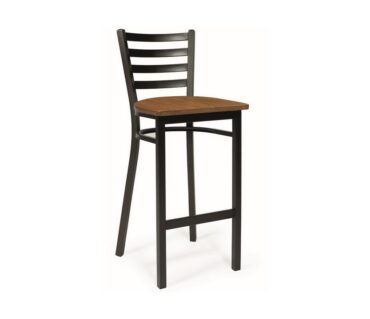 Taburete modelo 25-182 realizado en acero acabado en grafito o en gris envejecido (con suplemento) con soldaduras latonadas. Gran comodidad y durabilidad. Asiento disponible en tapizado, madera laminada acabado natural o madera maciza.