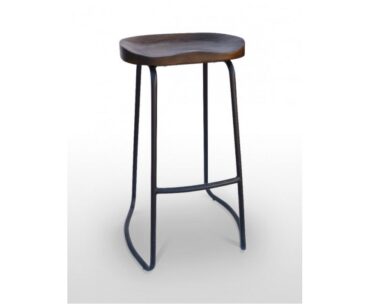 Taburete hostelería Ecopa. Taburete de líneas sencillas, pero no por ello menos original. Estructura realizada en acero color negro con asiento de madera maciza moldeada acabado en color nogal oscuro.