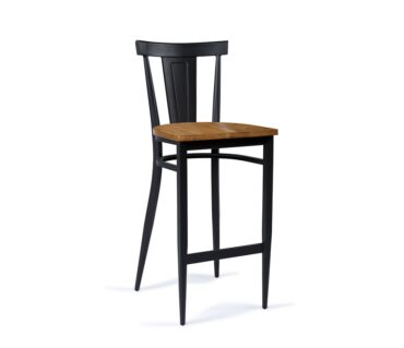 Taburete 25-185 con estructura realizada en dos versiones: en acero pintado en grafito o negro, o bien acero pintado en gris envejecido o negro envejecido, y con asiento en madera macizo. Un modelo muy resistente, diseñado para uso intensivo en espacios públicos donde comodidad y calidad tienen que ir de la mano.