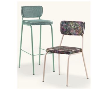 Taburete Austin Vintage. Original taburete con estructura metálica pintada o cromada que podrás elegir entre una amplia variedad de acabados, al igual que el asiento y el respaldo, tapízalo a tu gusto entre las posibilidades del muestrario, y haz que tu negocio tenga la personalidad que necesita para ser diferente al resto. Completa la colección con la silla a juego.