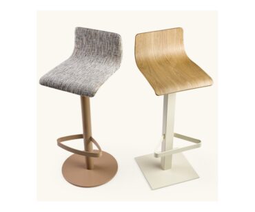 Taburete de hostelería, base cuadrada y columna cuadrada o cilíndrica, hay opción de giratorio. Acero acabado en multitud de acabados o bien en cromado,